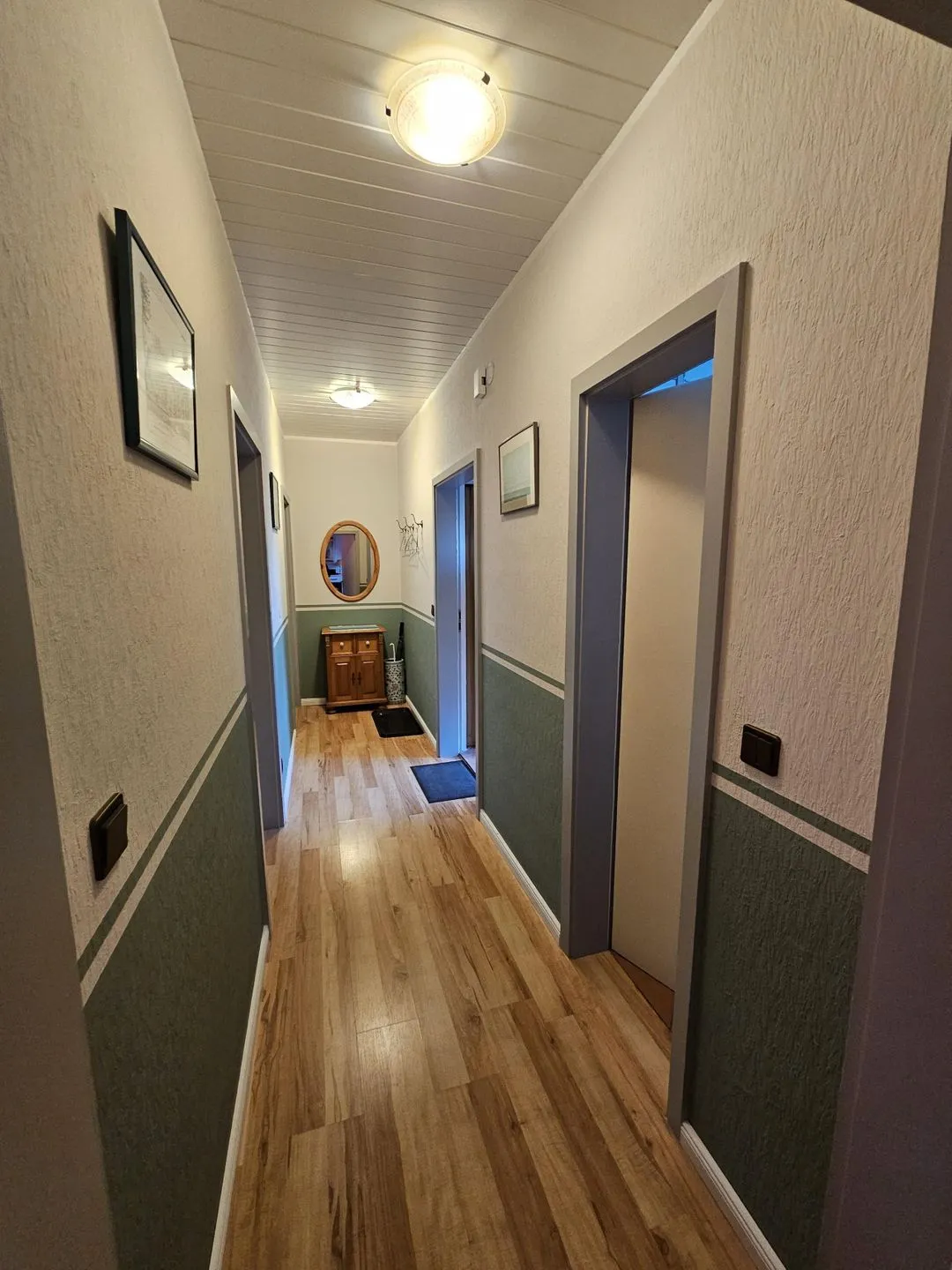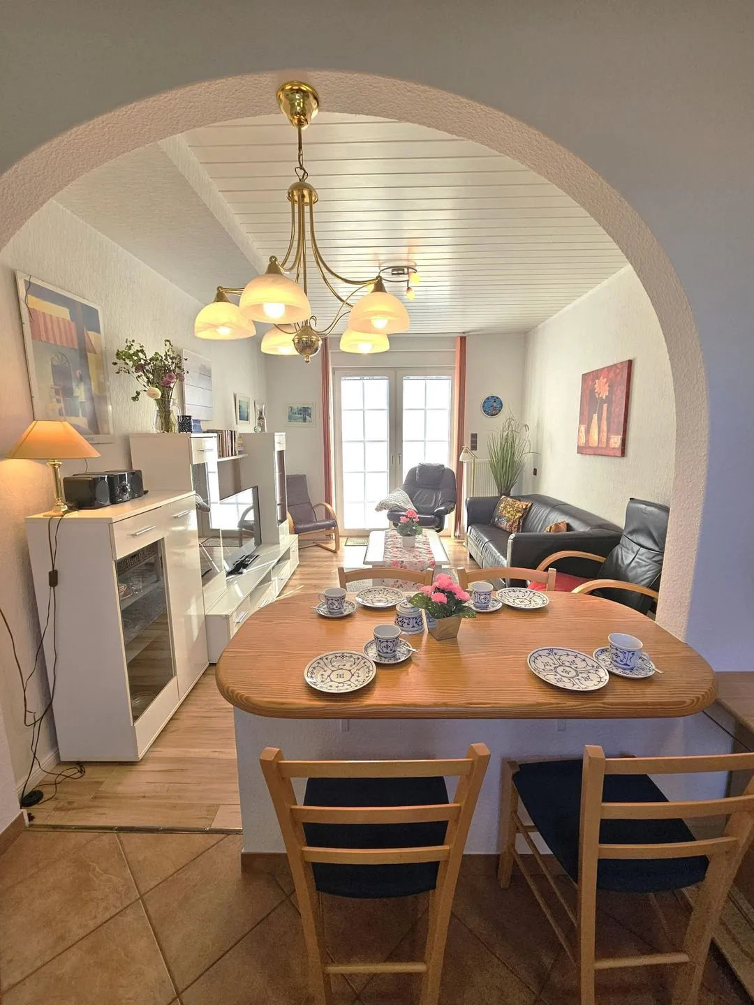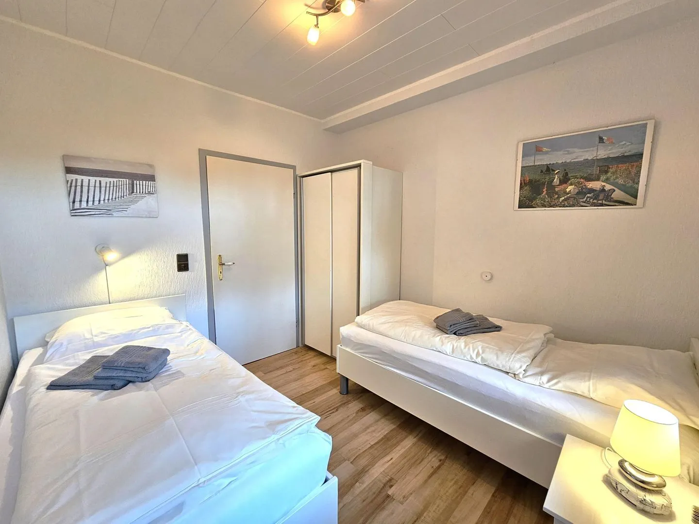 Im Wohnbereich stehen Ihnen ein Sofa und Sessel zur Verfügung; ein TV sowie Radio sorgen für Unterhaltung. Die Bodenbeläge in Wohn- und Schlafzimmern sind in Laminat ausgeführt. Ein Esstisch schafft einen angenehmen Rahmen für gemeinsame Mahlzeiten. Sichtschutz an allen Fenstern unterstützt Privatsphäre und ruhige Rückzugsmomente.
