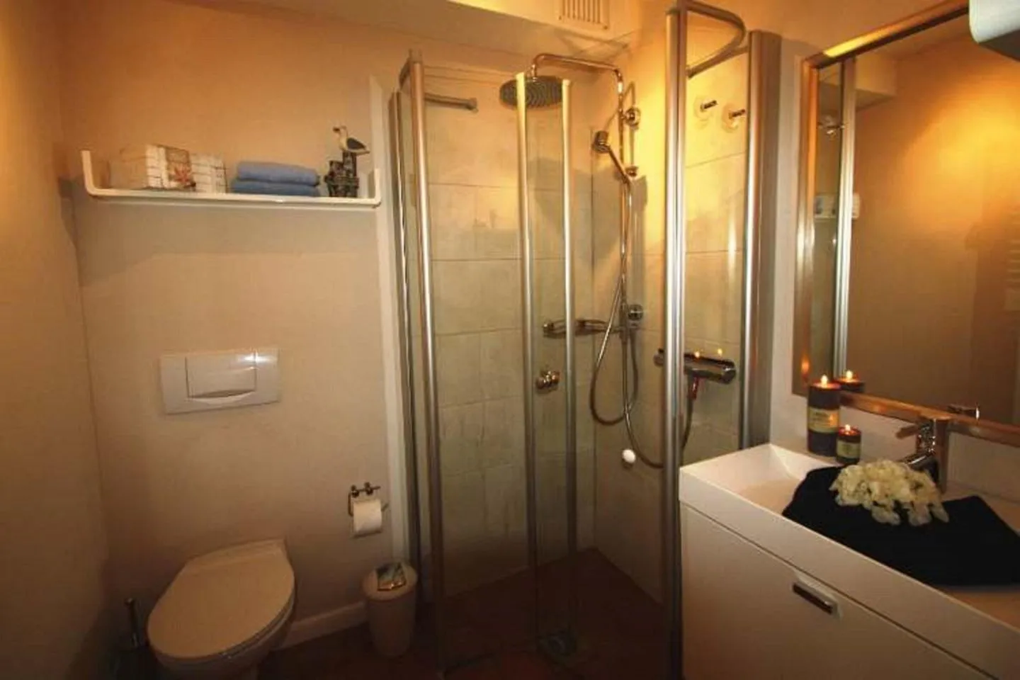 Das Badezimmer verfügt über eine bodengleiche Dusche, WC und Waschbecken; warmes Wasser und Heizung sorgen für angenehmen Komfort zu jeder Jahreszeit. Bügeleisen und Bügelbrett sind ebenfalls vorhanden. Internet und WLAN stehen Ihnen während des Aufenthalts zur Verfügung. Waschmaschine und Trockner können gemeinschaftlich ( gegen Gebühr) genutzt werden.
