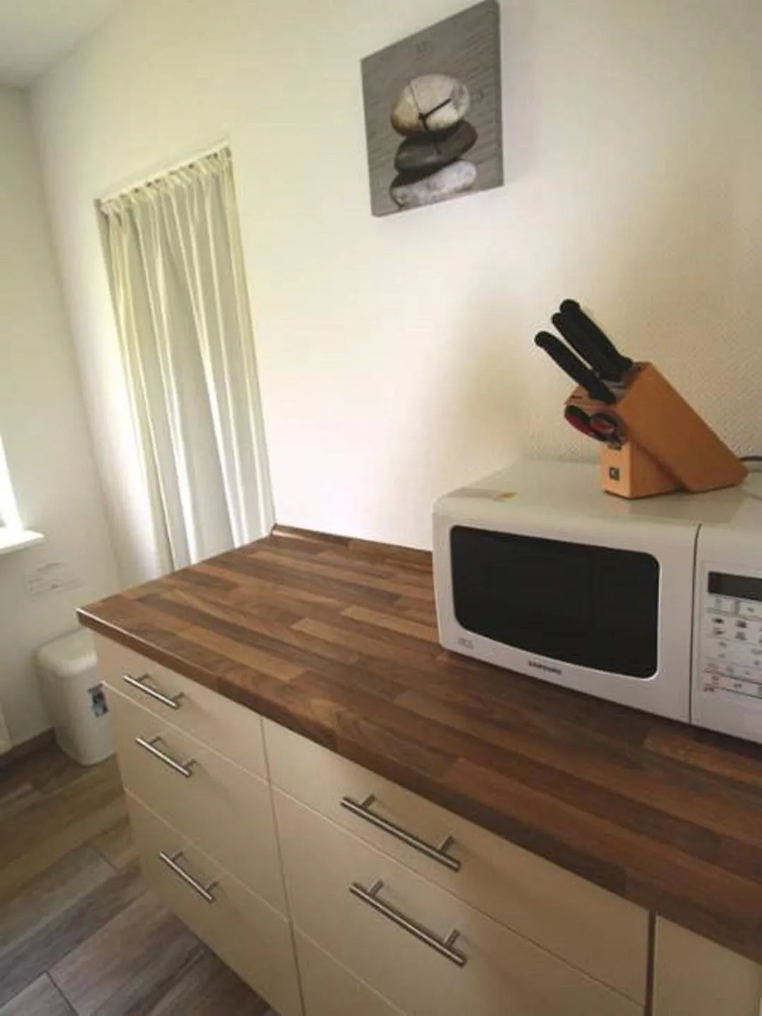 Im Wohnbereich erwarten Sie Sofa und Sessel sowie ein TV mit Satellitenanschluss, ergänzt durch Radio und Telefon. WLAN/Internet ist vorhanden. Die Wohnung verfügt über eine Küche mit Essbereich und Esstisch sowie umfangreicher Ausstattung: 4-Platten-Herd, Backofen, Mikrowelle, Kühlschrank mit Gefrierfach, Spülmaschine, Kaffeemaschine, Wasserkocher und Toaster. Geschirr, Besteck und Küchenutensilien sind vorhanden.