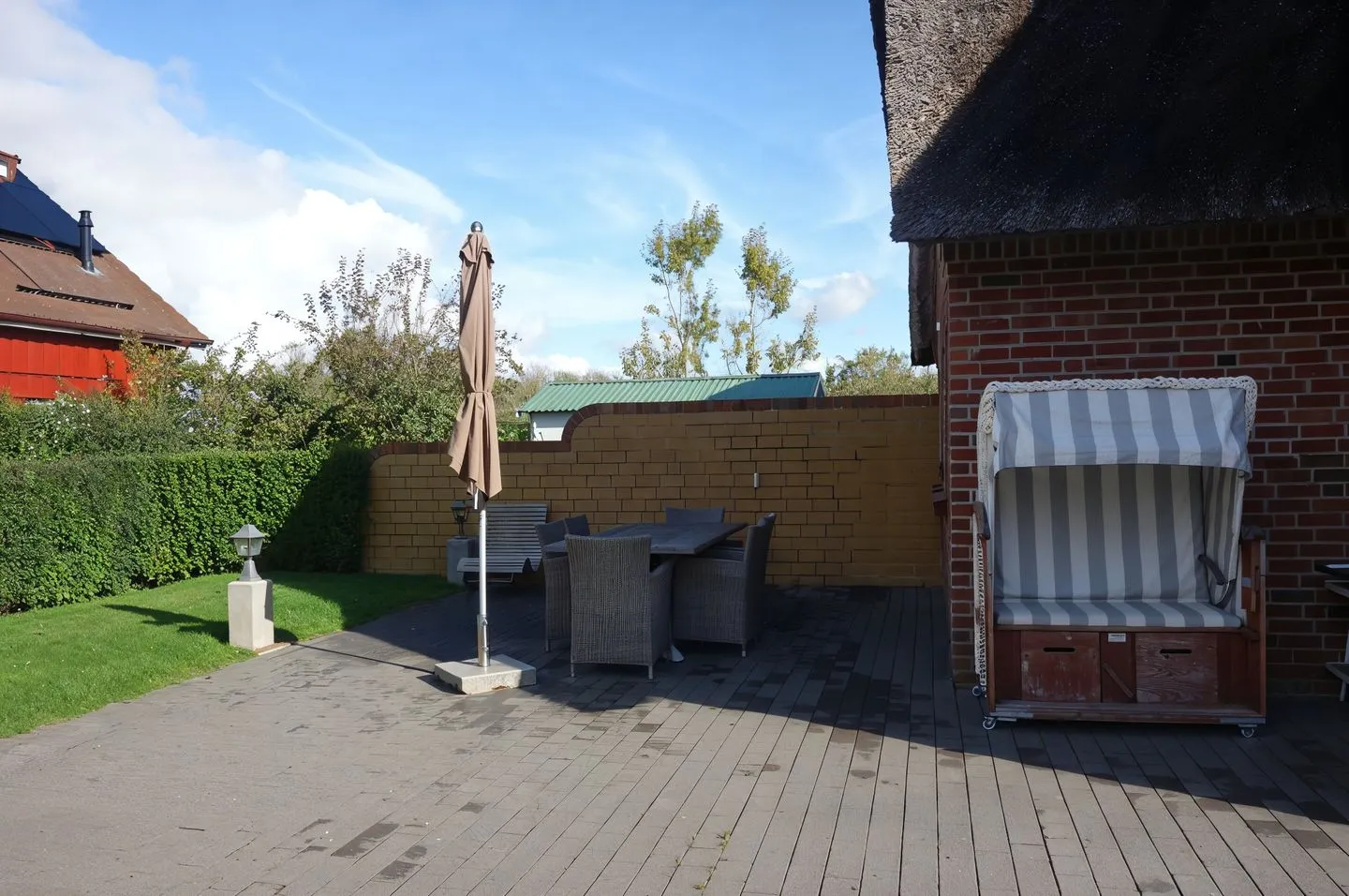Im Außenbereich laden Garten und Terrasse mit Gartenmöbeln und Strandkorb zum Verweilen ein. Für die Anreise mit dem Auto stehen kostenfreie Parkmöglichkeiten zur Verfügung: ein Privatparkplatz mit insgesamt 2 Stellplätzen sowie ein Carport.