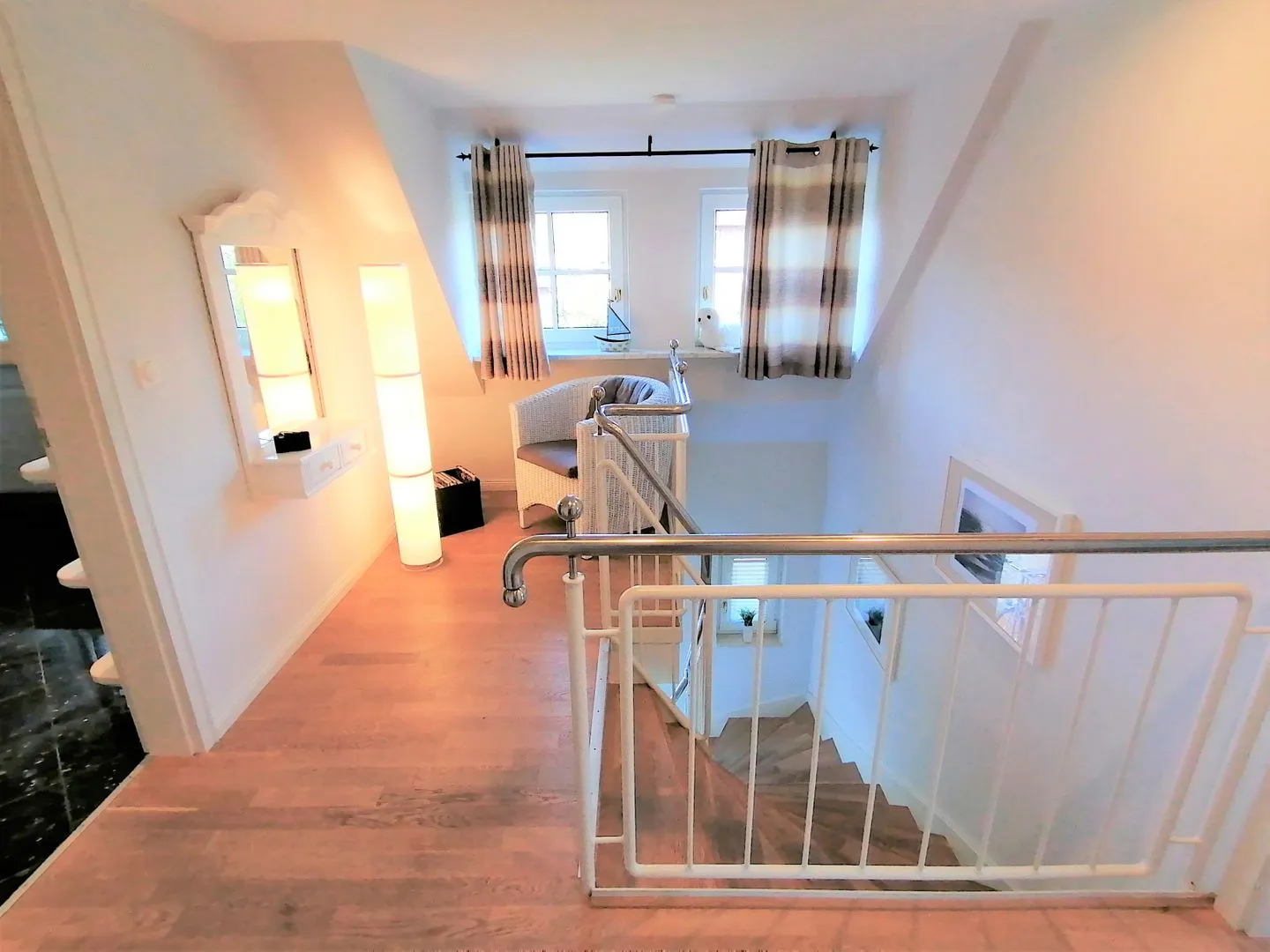 Für den Alltag vor Ort stehen Ihnen ein Badezimmer mit Dusche (1. OG) sowie ein zusätzliches Gäste-WC (im EG) zur Verfügung. Im Wohnbereich erwarten Sie ein Sofa und Sessel, ein TV sowie ein Radio; WLAN/Internet ist vorhanden.