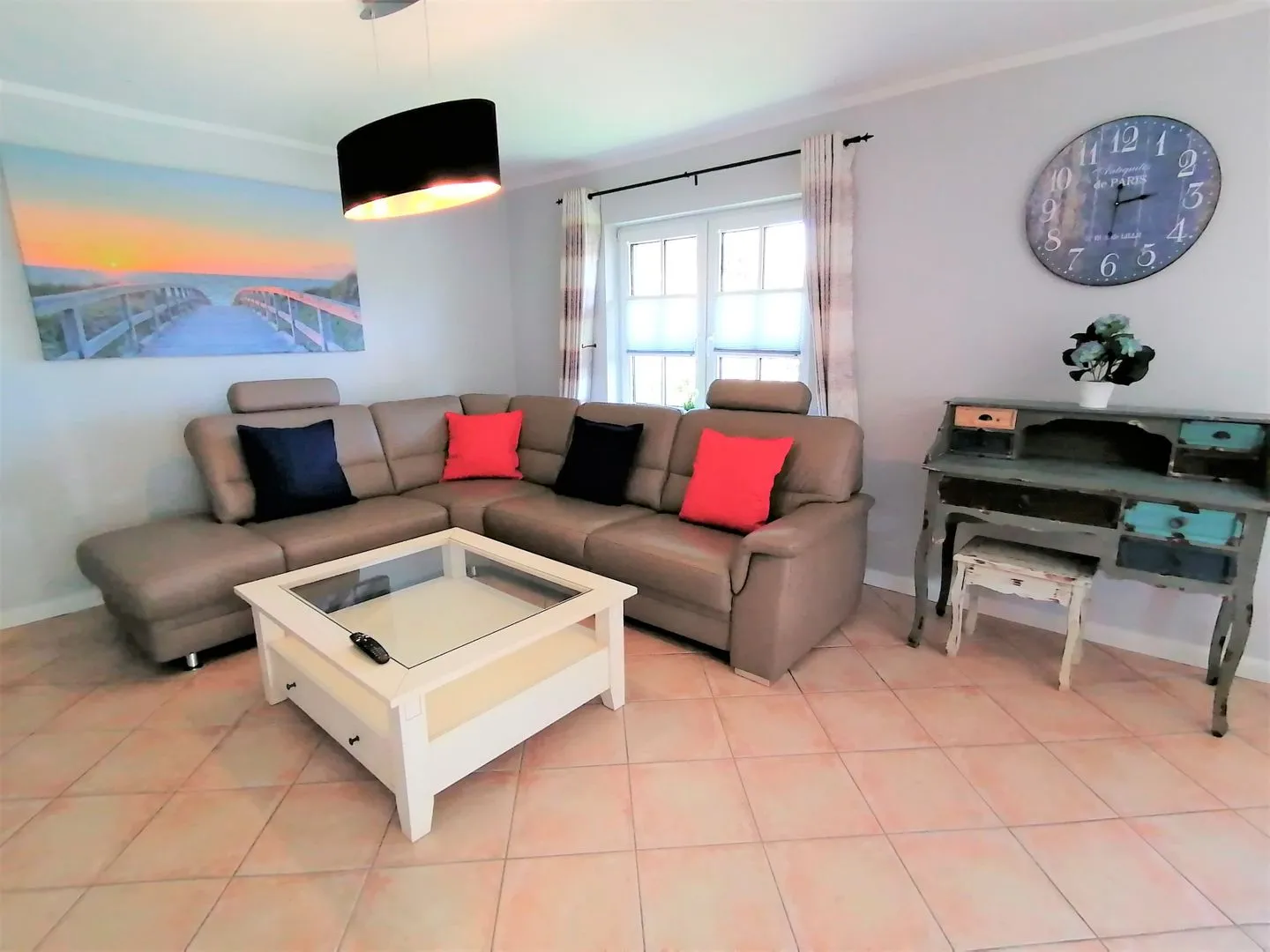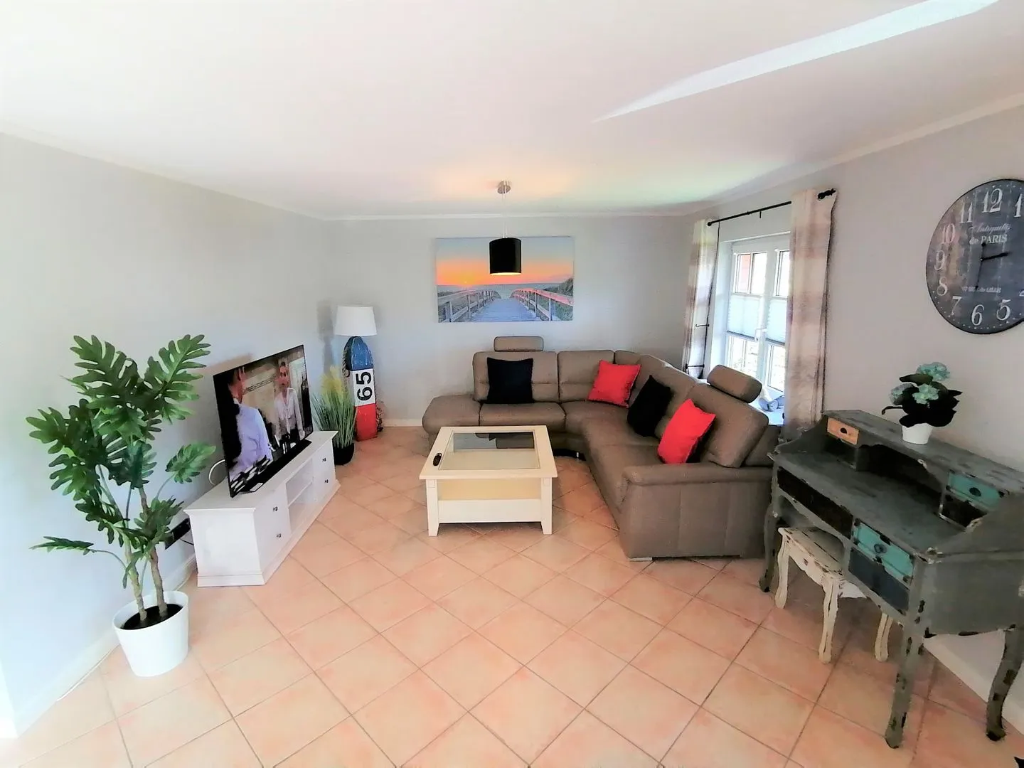 Im Außenbereich laden Terrasse und Gartenmöbel zu ruhigen Stunden ein. Ein kostenloser Privatparkplatz (1 Stellplatz) steht Ihnen direkt zur Verfügung. Einkaufsmöglichkeiten erreichen Sie nach ca. 350 m, das Meer und der Strand nach ca. 400 m. Die Stadt liegt etwa 1.400 m entfernt, der öffentliche Nahverkehr ca. 400 m; zur Fähre sind es ca. 1.900 m. Golffreunde finden einen Golfplatz in ca. 2.500 m Entfernung.