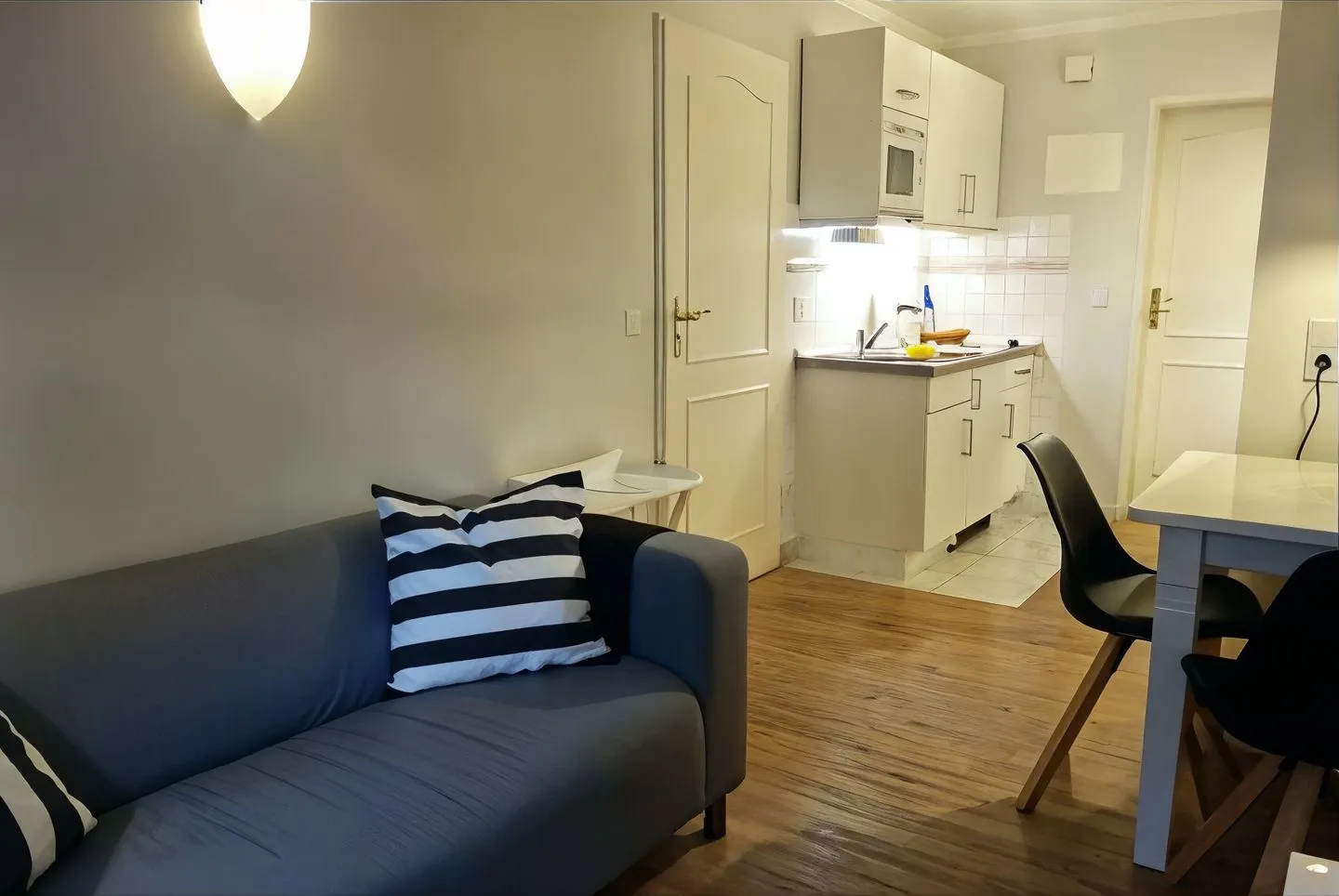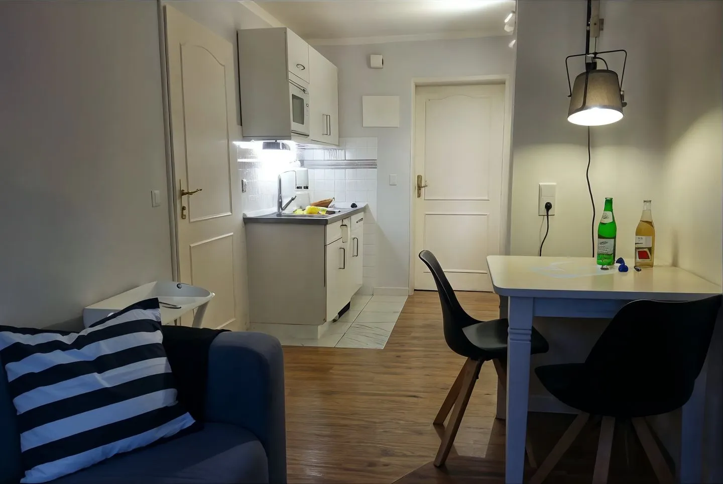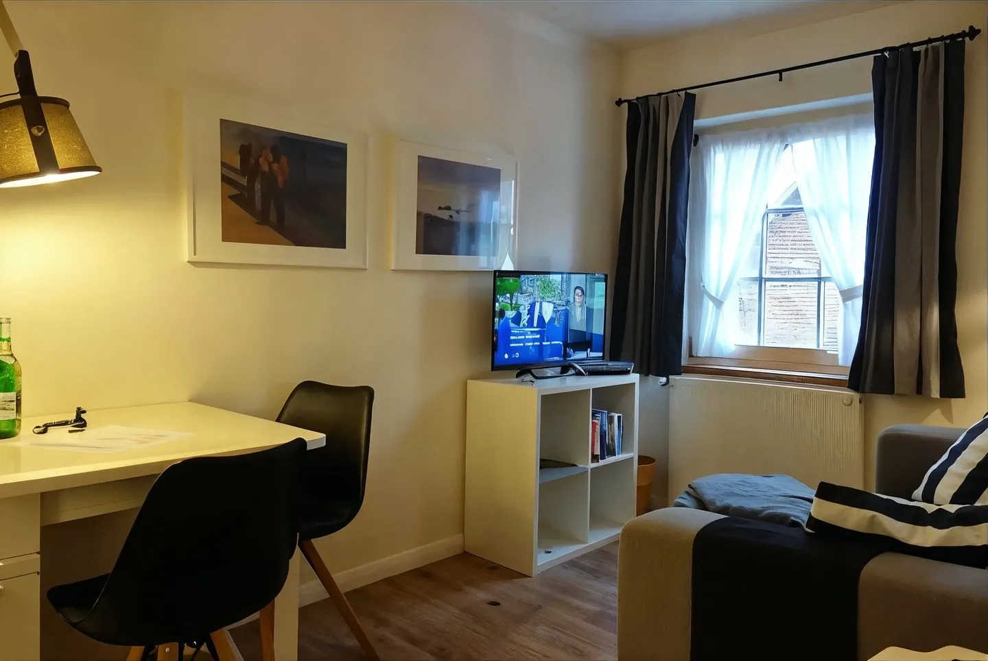 Für Ihre Selbstversorgung steht Ihnen eine Küche zur Verfügung, ausgestattet mit Herd (2-Platten), Mikrowelle, Kühlschrank, Wasserkocher und Kaffeemaschine sowie Küchenutensilien, Geschirr und Besteck. Ein Essbereich mit Esstisch ist vorhanden, ebenso ein Sofa für entspannte Stunden. Zur Unterhaltung und Information nutzen Sie WLAN/Internet, einen TV und ein Radio.