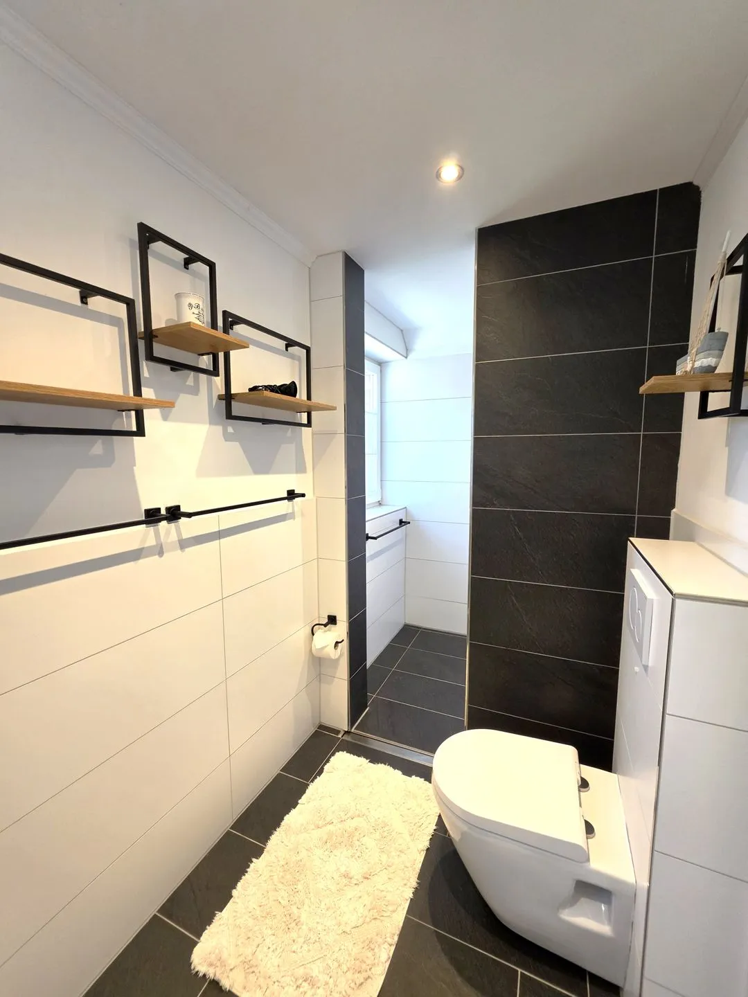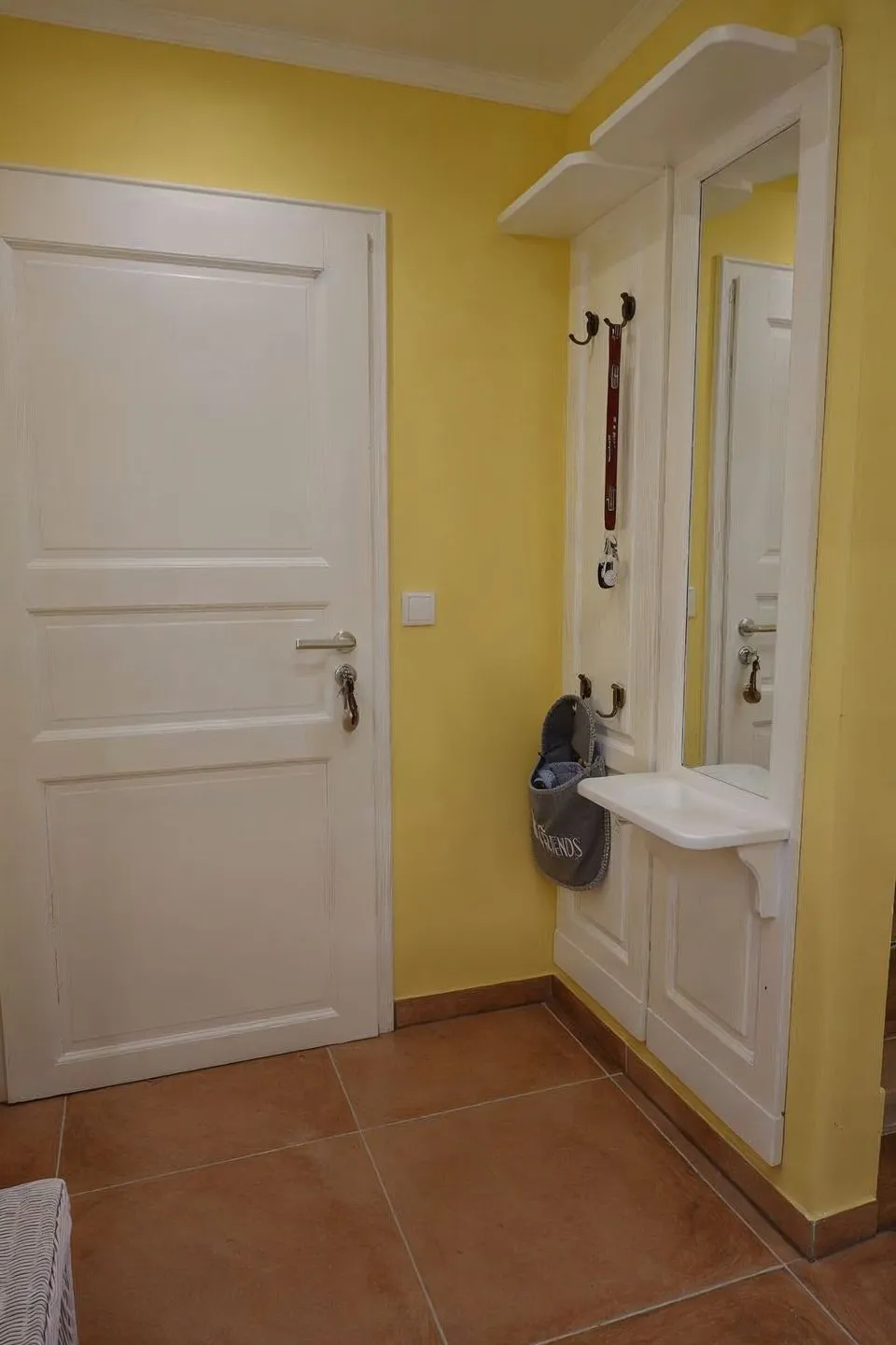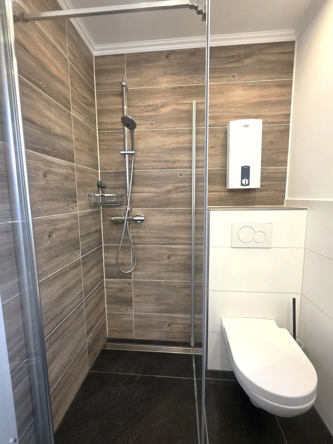 Für längere Aufenthalte ist die Eigennutzung von Waschmaschine und Trockner besonders praktisch. Bügeleisen und Bügelbrett, Staubsauger sowie Abfalleimer ergänzen die Ausstattung.