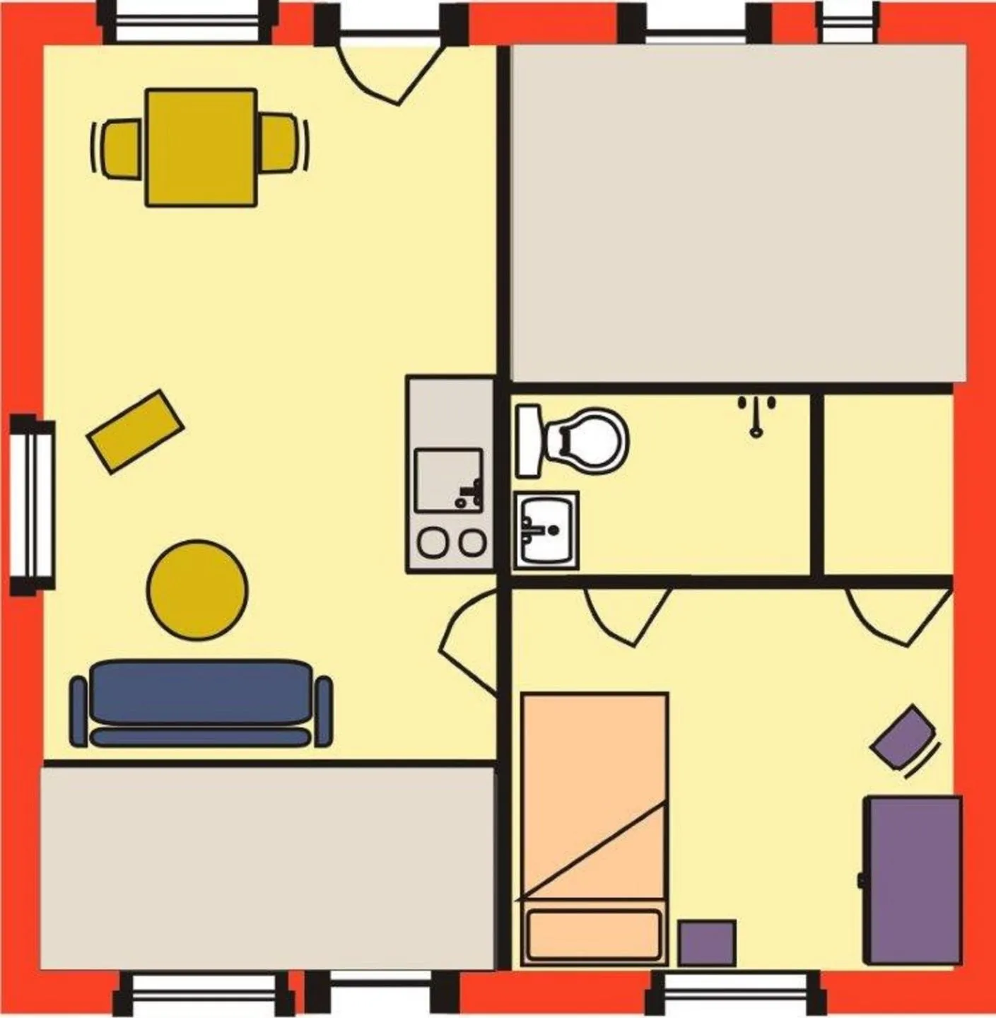 Die Unterkunft umfasst insgesamt 2 Zimmer mit Wohnzimmer und 1 Schlafzimmer sowie 1 Badezimmer. Im Bad steht Ihnen eine bodengleiche Dusche zur Verfügung, ergänzt durch WC, Waschbecken, Spiegel und warmes Wasser.