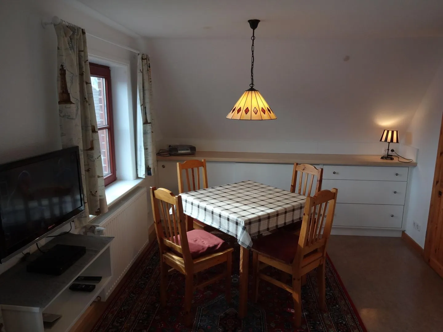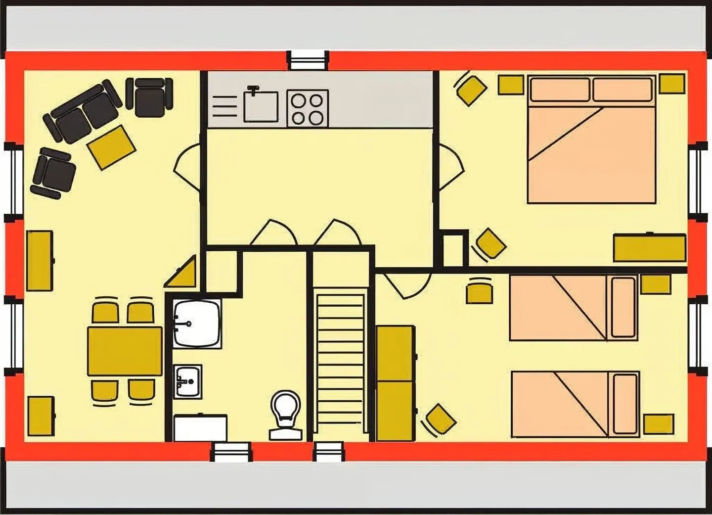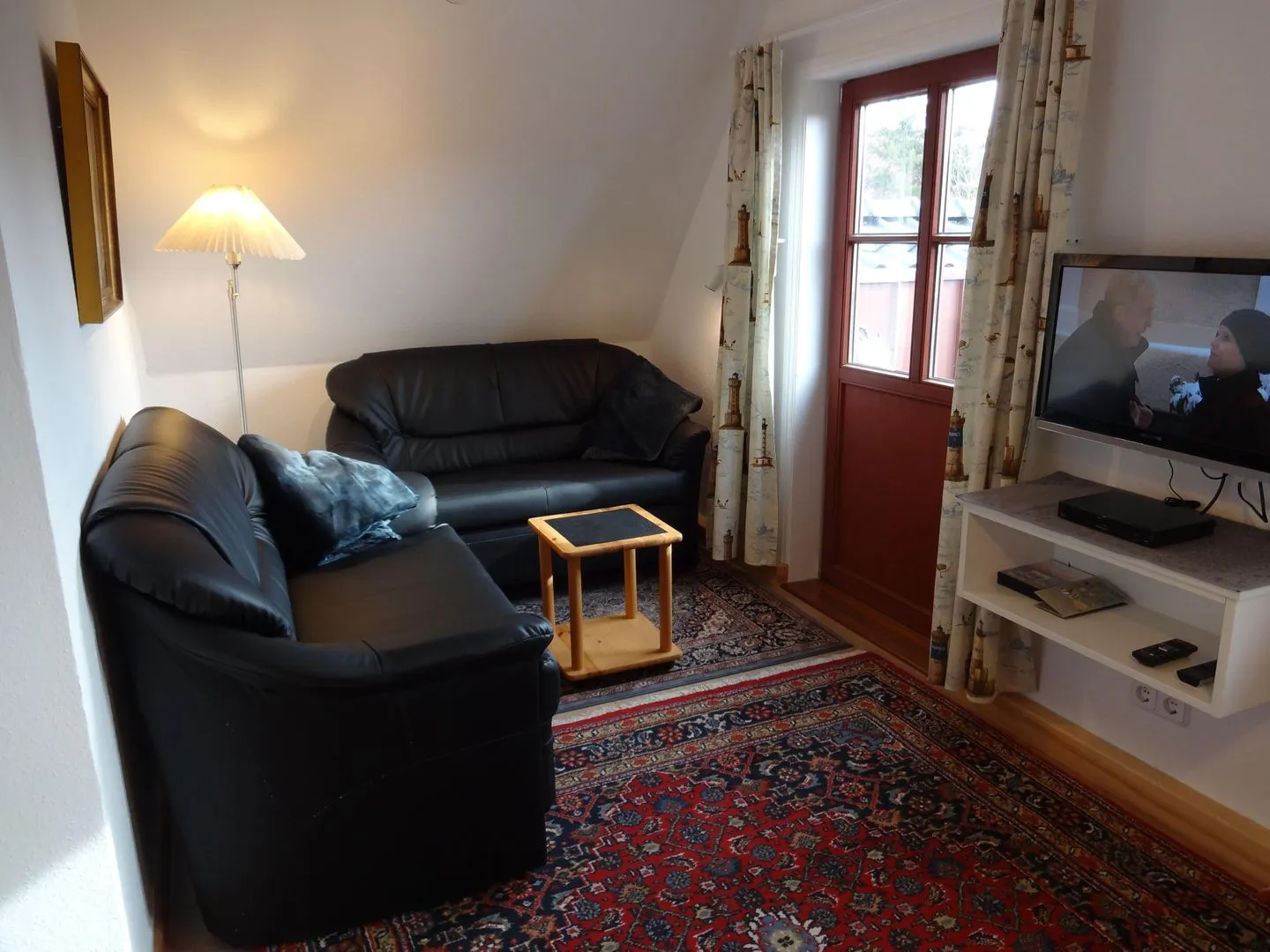 Im Wohnzimmer finden Sie ein Sofa sowie einen TV. Für Unterhaltung stehen außerdem Radio, CD- und DVD-Spieler zur Verfügung. WLAN/Internet ist vorhanden, sodass Sie auch im Urlaub gut verbunden bleiben. Zwei separate Schlafzimmer schaffen Rückzugsmöglichkeiten und unterstützen einen entspannten Tagesablauf – ob als Paar, Familie oder zu viert.