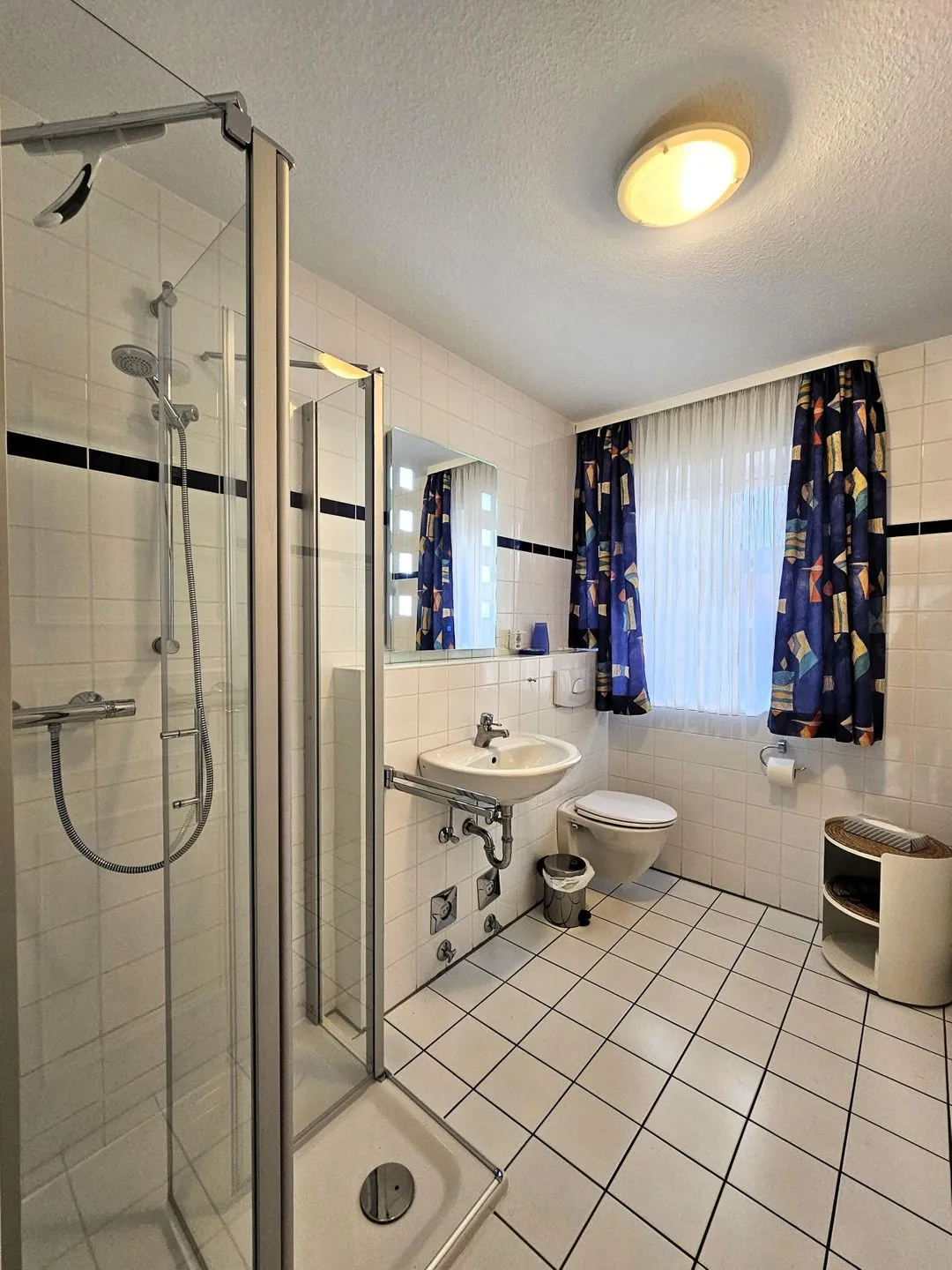 Im Badezimmer finden Sie eine Dusche, WC, Waschbecken, Spiegel, Fenster und Haartrockner. Eine Waschmaschine und ein Trockner stehen gemeinschaftlich zur Nutzung bereit (gegen Gebühr).