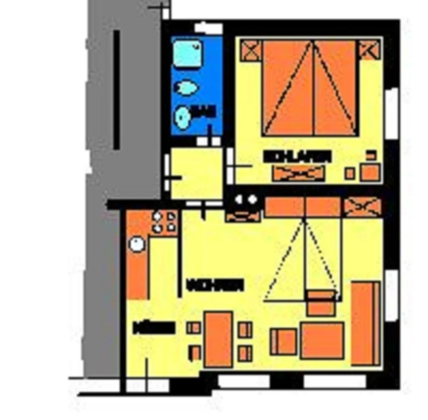 - 1 kleines Doppelbett - Schlafsofa