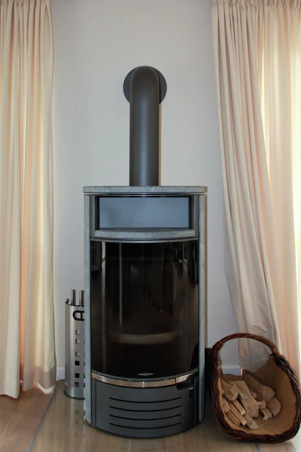 Der Wohnbereich ist mit Dielenboden ausgestattet und bildet zusammen mit der offenen Küche einen einladenden Mittelpunkt. Für gemütliche Stunden steht Ihnen ein Kaminofen zur Verfügung, ergänzt durch TV sowie Radio. Die offene Küche zum Wohnzimmer ist umfassend eingerichtet: 4-Platten-Herd, Backofen, Mikrowelle, Kühlschrank, ein extra Gefrierschrank, Spülmaschine sowie Toaster, Wasserkocher und Kaffeemaschine. Geschirr, Besteck und Küchenutensilien sind vorhanden; ein Essbereich mit Esstisch rundet die Ausstattung ab.