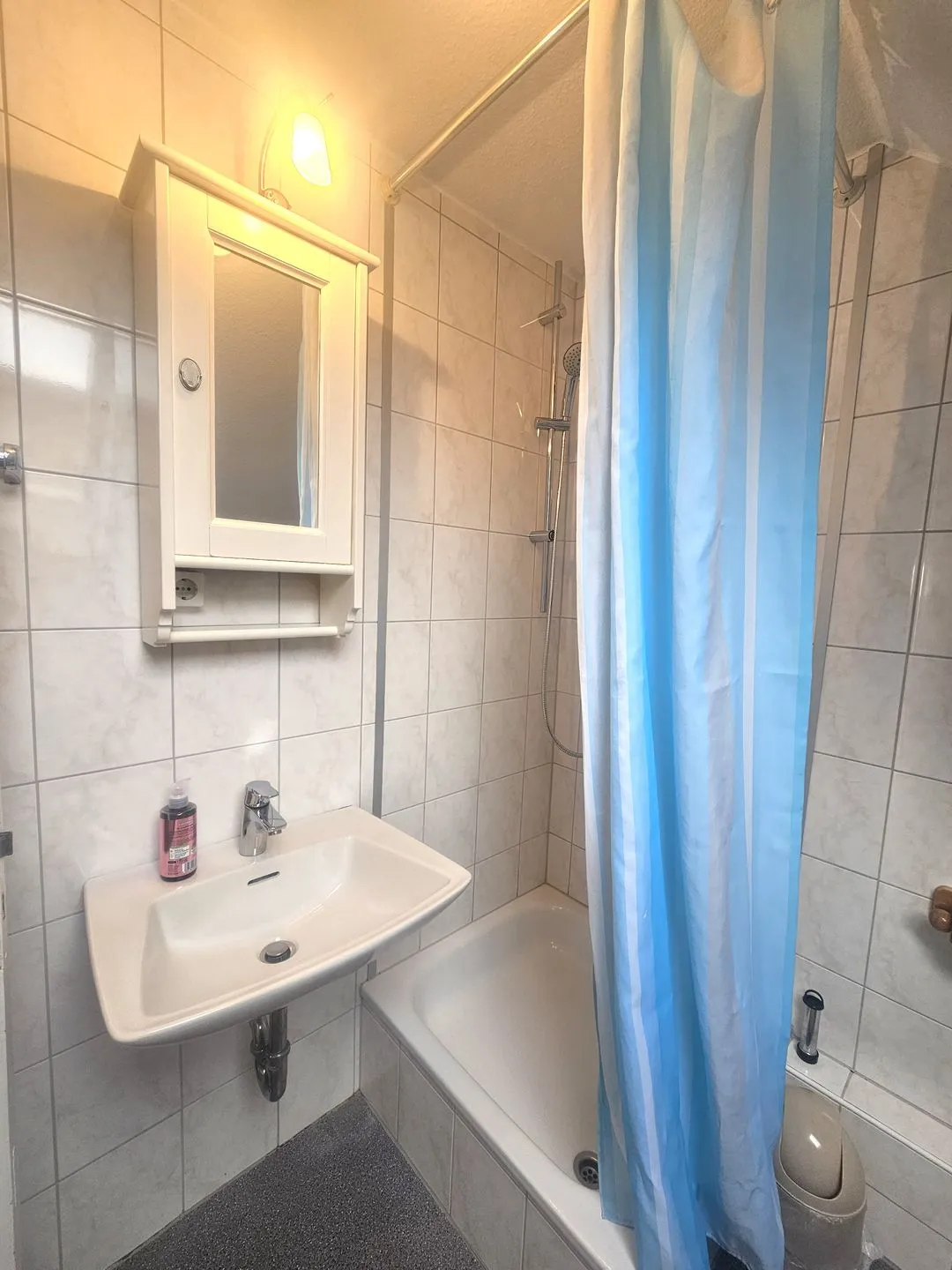 Im Badezimmer finden Sie Dusche, WC und Waschbecken.