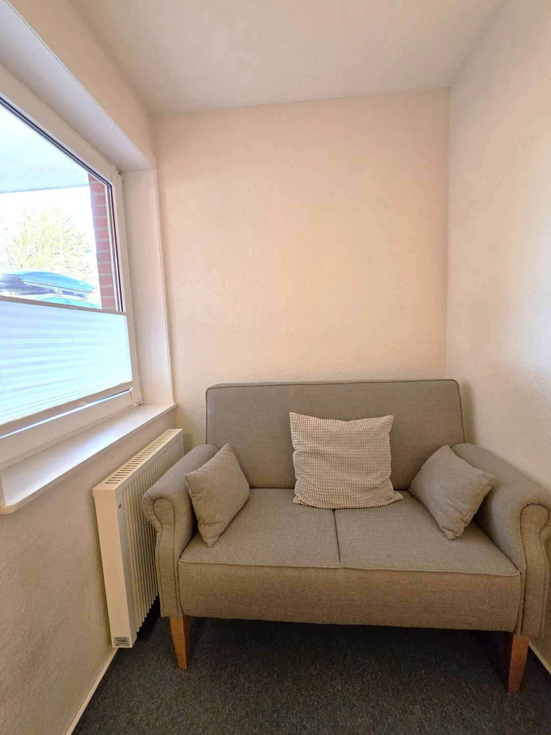 Im Wohnbereich stehen Ihnen ein Sofa, ein Sessel, ein Esstisch sowie TV, Radio, DVD-Spieler und Bücher zur Verfügung. Teppichboden im Wohn- und Schlafzimmer sorgt für eine wohnliche Atmosphäre. Die vorhandenen Fenster sind mit Sichtschutz ausgestattet.