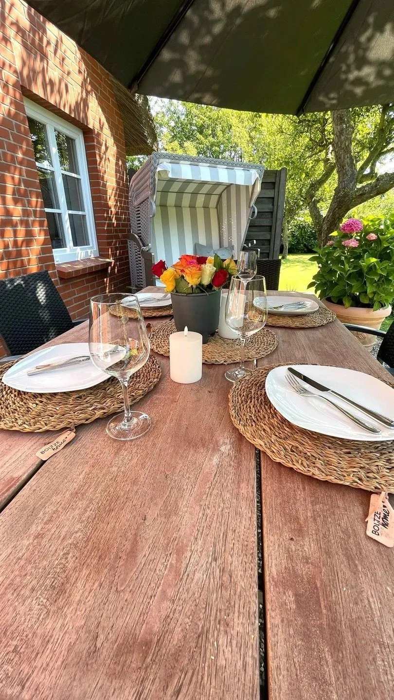 Im Außenbereich genießen Sie Garten und Terrasse mit Gartenmöbeln, Sonnenschirm und Strandkorb – ideal für ruhige Stunden an der frischen Luft. Ein kostenloser Privatparkplatz (1 Stellplatz) steht direkt an der Unterkunft zur Verfügung.